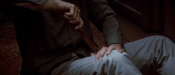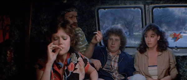 Returning to Chris, the above image shows one of her FIVE moments where she causes physical harm to the killer, a number which goes above the average blows dealt to the killer from a final girl. Her developed relationship with Rick (Paul Kratka), whose eye is popped out in the gif above, that is introduced at the beginning of the film proves that she and her peers are also a bit older than the average high school-aged victims of the slasher genre. This is also made apparent by the adult stoner couple Chuck and Chili (David Catims and Rachel Howard) that Chris is friends with.