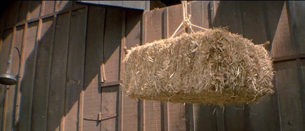 For this piece, I made gifs of every direct 3D moment in the film. Instead of including the blue and red tinted images, I decided to show the 2D images for clarity here. It is still quite easy to see if the image is particularly effective when shown in 3D or not. As the first several images show, director Steve Miner uses some funny moments of the couple that owns the film’s introductory general store, i.e. the mouse, the snake in the rabbit hutch, the clothes line pole, and the television antenna, to show how 3D will enhance the world of Jason. For those of you you that haven’t had the pleasure of seeing Part III, I would be cautious proceeding any further, as the gifs here will definitely spoil the kills and the ending of the film.