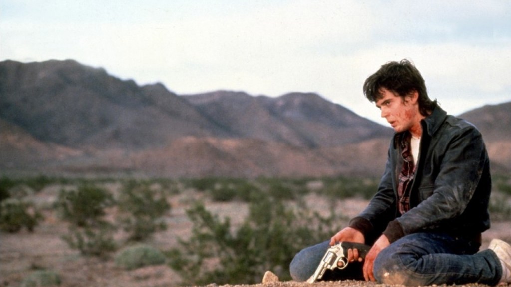 The film features another early performance from Jennifer Jason Leigh as Nash, a waitress at a roadside diner that is thrust into Ryder’s deadly game. Harmon also utilizes the broad location of the open road as an additional threat to Jim. The film is full of striking shots of desert landscapes and mountain ranges.
