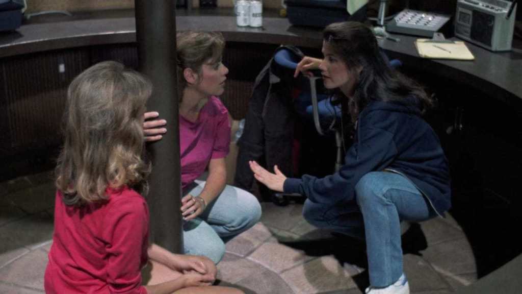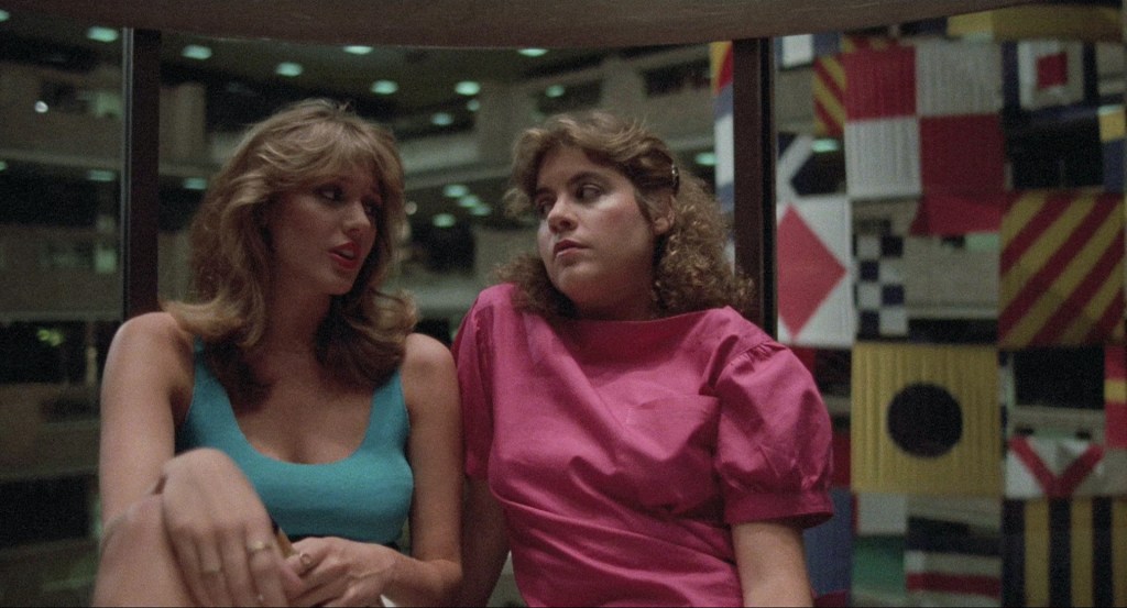 One of my favorite elements of the film is the closed mall that is used for the last act of the narrative. It is a huge structure that just allows for so many creative moments and the directors make full use of the space. Malls at night are generally on the creepier side, and this one is no exception. The dark hallways allow for fantastic jump scares and the darkened window displays of the various storefronts add fun opportunities for the killer to blend into the background. The mall sequence was shot at the Dallas Market Center, and the details of the real stores and the landscape really enrich the depth of the film. It is honestly one of my favorite locations in a slasher film to date.