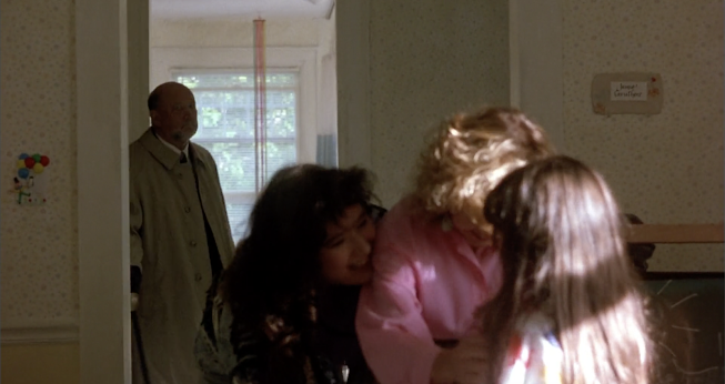 Is it scary? Absolutely not. Does it attempt to expand on the mythology of the franchise of the fourth film? Definitely not. But what it does do is give us a film where you can clearly tell the cast was having a really fun time making it. And the real-life relationships between the actors really come across in the film. Is it messy? Obviously. But that does not mean it is lacking any merit. We have another great and increasingly deranged performance from veteran Donald Pleasance as Dr. Loomis, a strong performance by Danielle Harris who is forced to express emotions without any words for the majority of the film, and a respectable replacement for Rachel in Tina, who literally and willingly gives her life to save Jamie. Also, it would be a shame to not mention Jamie’s awkward friend Billy who likes cookies and somehow can understand her non-sign language gestures.